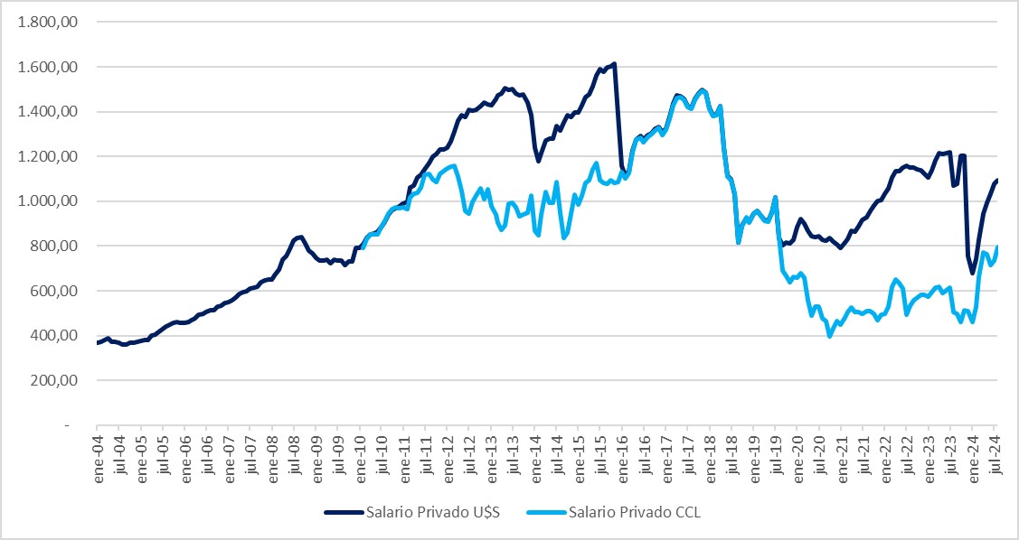 Gráfico 5. Evolución del salario privado registrado en dólares