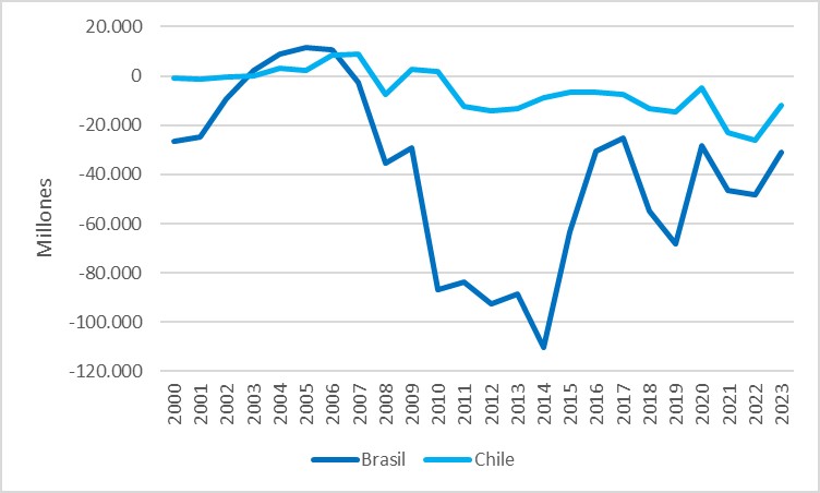 Gráfico 9. Saldo de la cuenta corriente, Brasil y Chile.