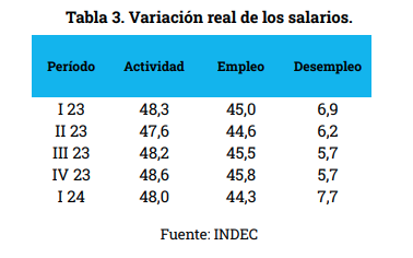 La “transición” del programa económico se da en un escenario en donde las variables económicas de la economía real caen significativamente. A la profunda caída del salario que acompaña a esta gestión desde sus inicios —producto de la mega devaluación de diciembre de 2023— se le suma más rápido de lo previsto un fuerte crecimiento del desempleo. Como corolario, los datos del primer trimestre del año también muestran una caída mayor a la esperada en el nivel de actividad económica.