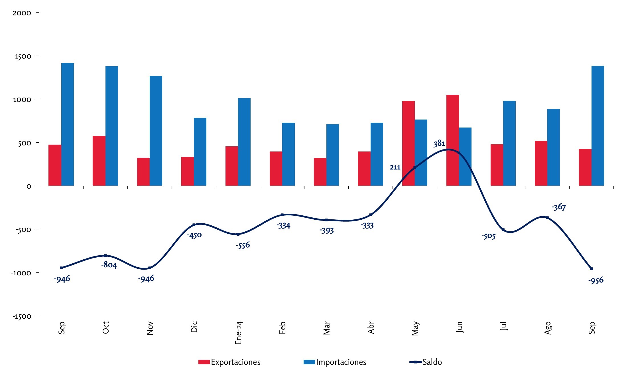 - USD 1.383 millones en sep-2024 (-2,7% interanual).
