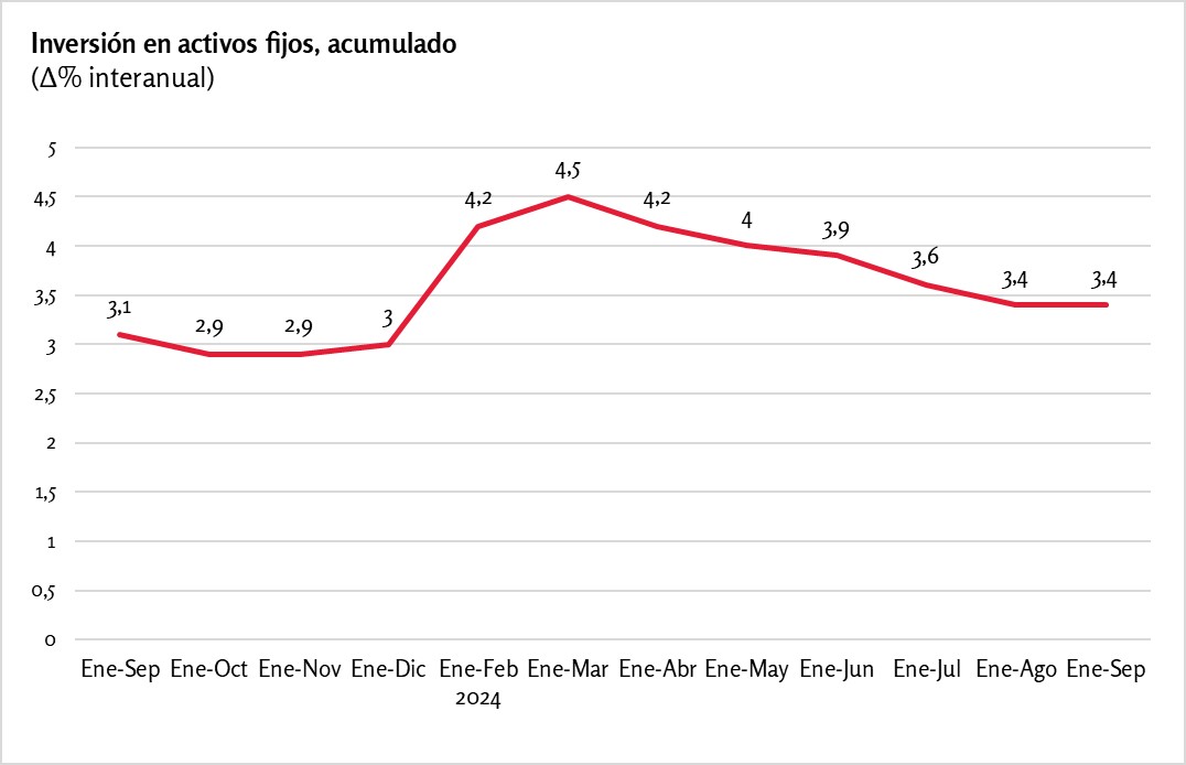 - La inversión en activos fijos de China creció un 3,4% interanual en ene-sep 2024.
