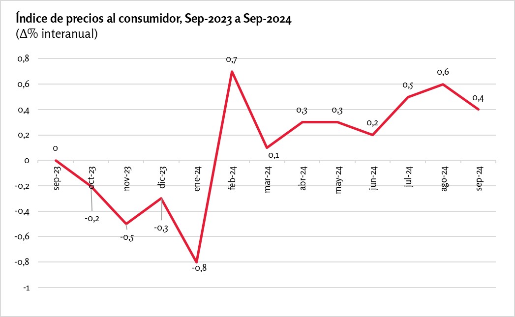 +0,4% interanual en sep-2024 +0,6% interanual en ago-2024