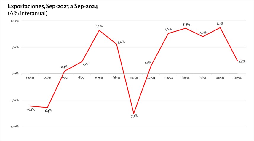 +2,4% interanual en sep-2024 +8,7% interanual en ago-2024