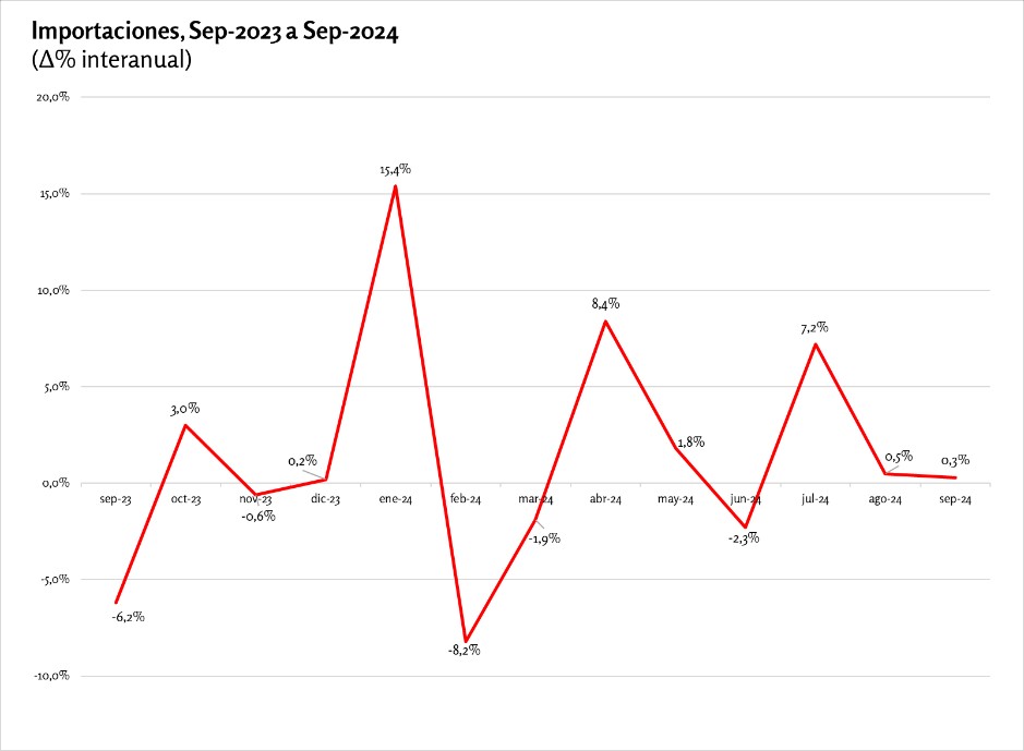 - En los primeros 9 meses del año, las importaciones crecieron 2,2% interanual.