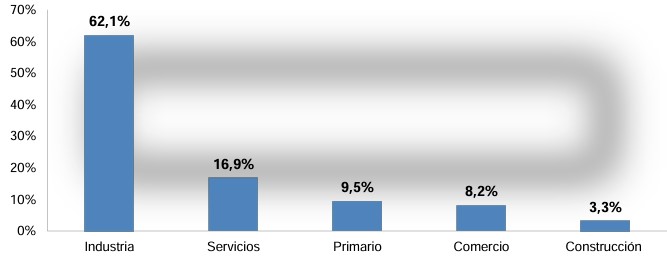 • Sector: el 67,1% de los casos estuvo ligado a la Industria (principalmente sector Textil, Alimenticio, Automotriz y Metalúrgica y Siderúrgica), seguido de Comercio (14,3%), Servicios (11,9%), Construcción (3,8%) y sector Primario (2,9%).