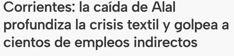 La histórica empresa textil Emilio Alal, cerró de forma definitiva sus plantas ubicadas en Goya (Corrientes) y Villa Ángela (Chaco), dejando sin empleo directo a más de 260 trabajadores y afectando a numerosos empleos indirectos vinculados a proveedores y servicios locales.
