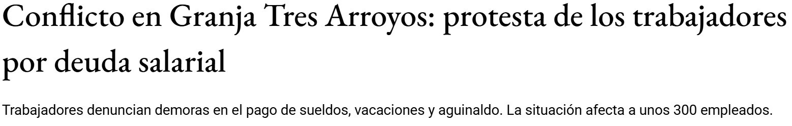 La avícola Granja Tres Arroyos protagonizó un conflicto laboral prolongado por deudas salariales acumuladas, que derivó en medidas de fuerza de sus trabajadores y tensiones operativas significativas. La protesta se centró en el reclamo por el incumplimiento en el pago de salarios, aguinaldos, horas extras y vacaciones.