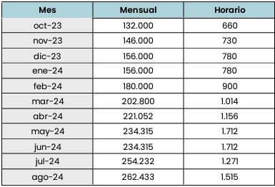 - Desde noviembre de 2023 hasta agosto de 2024 el salario mínimo real acumuló una caída de 26,5%.