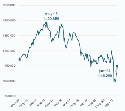 Enero 2009-junio 2024. Sin estacionalidad. Pesos constantes junio-24.