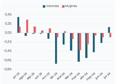 Gráfico 10 | Variación mensual de los asalariados registrados del sector privado por sexo.