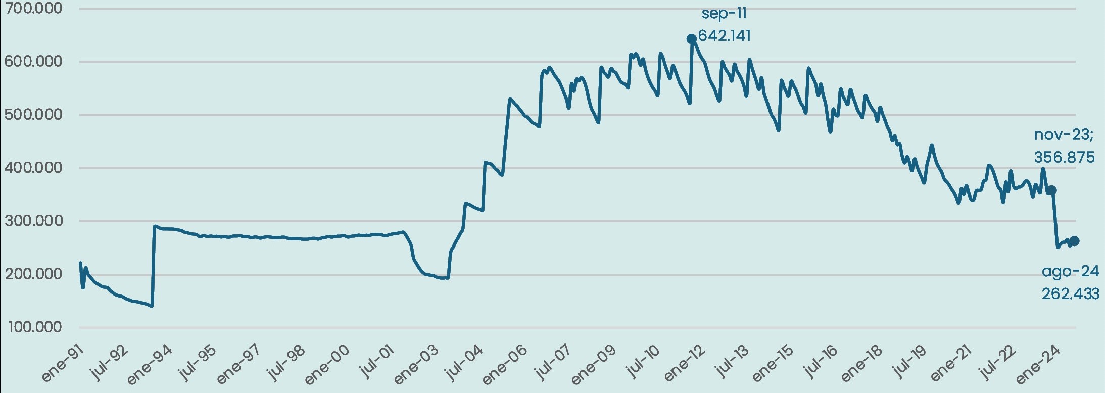 Enero 2009-junio 2024. En miles. Sin estacionalidad.