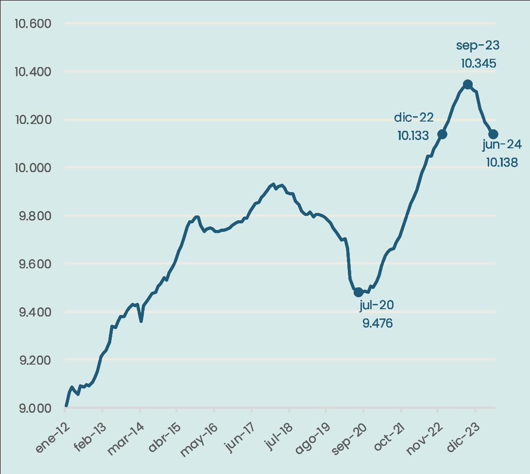 Enero 2012-junio 2024. En miles. Sin estacionalidad.