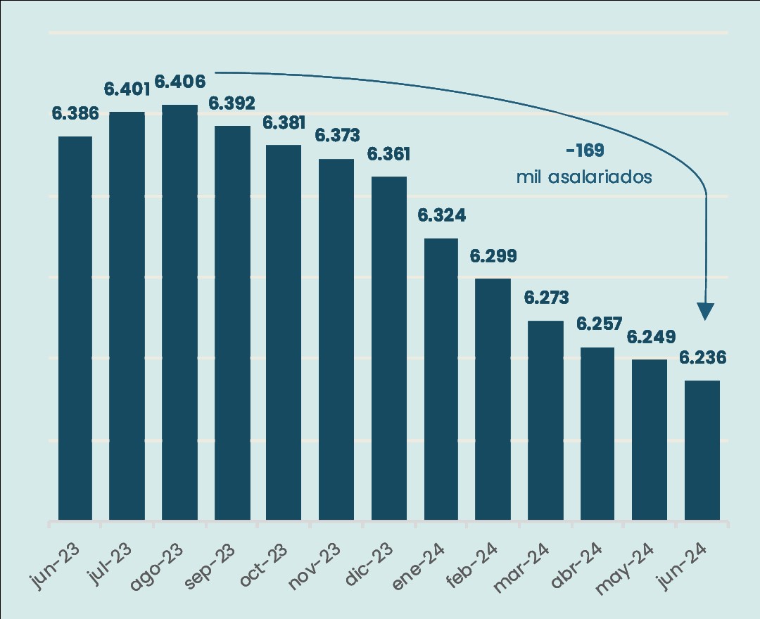 - En junio de 2024, 6,24 millones de trabajadores eran asalariados formales en empresas privadas (excluyendo el empleo en casas particulares).