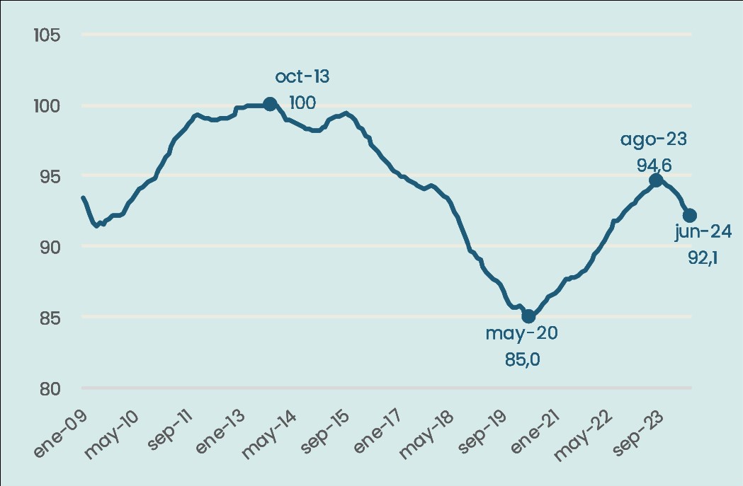 Enero 2009-junio 2024. Índice octubre 2013=100. Sin estacionalidad.