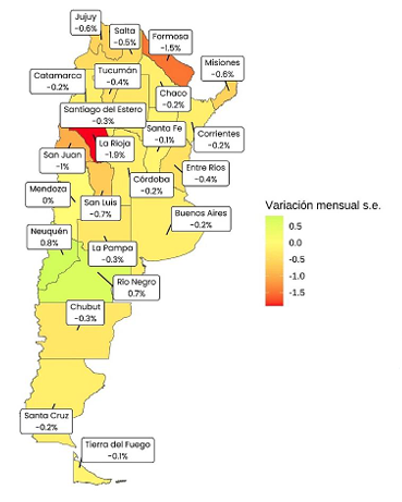- Las provincias que experimentaron las mayores reducciones fueron La Rioja, Formosa y San Juan, con caídas de entre 1% y 1,9%.
