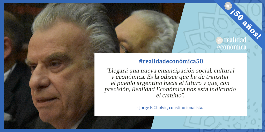 Sin duda, bien señalaba Sampay que el anhelo de justicia es inherente a la índole humana pese a la terca resistencia de los derechos adquiridos, y por ello señalamos que se debe tener en cuenta que la conciencia ética está en el origen de toda transformación histórica de liberación de los oprimidos y excluidos, y que llegará el tiempo en que la debilidad se transformará en fortaleza ética. Llegará entonces una nueva emancipación social, cultural y económica. Es la odisea que ha de transitar el pueblo argentino hacia el futuro de anhelado, y que con precisión Realidad Económica en sus 50 años de vida nos está indicando el camino.