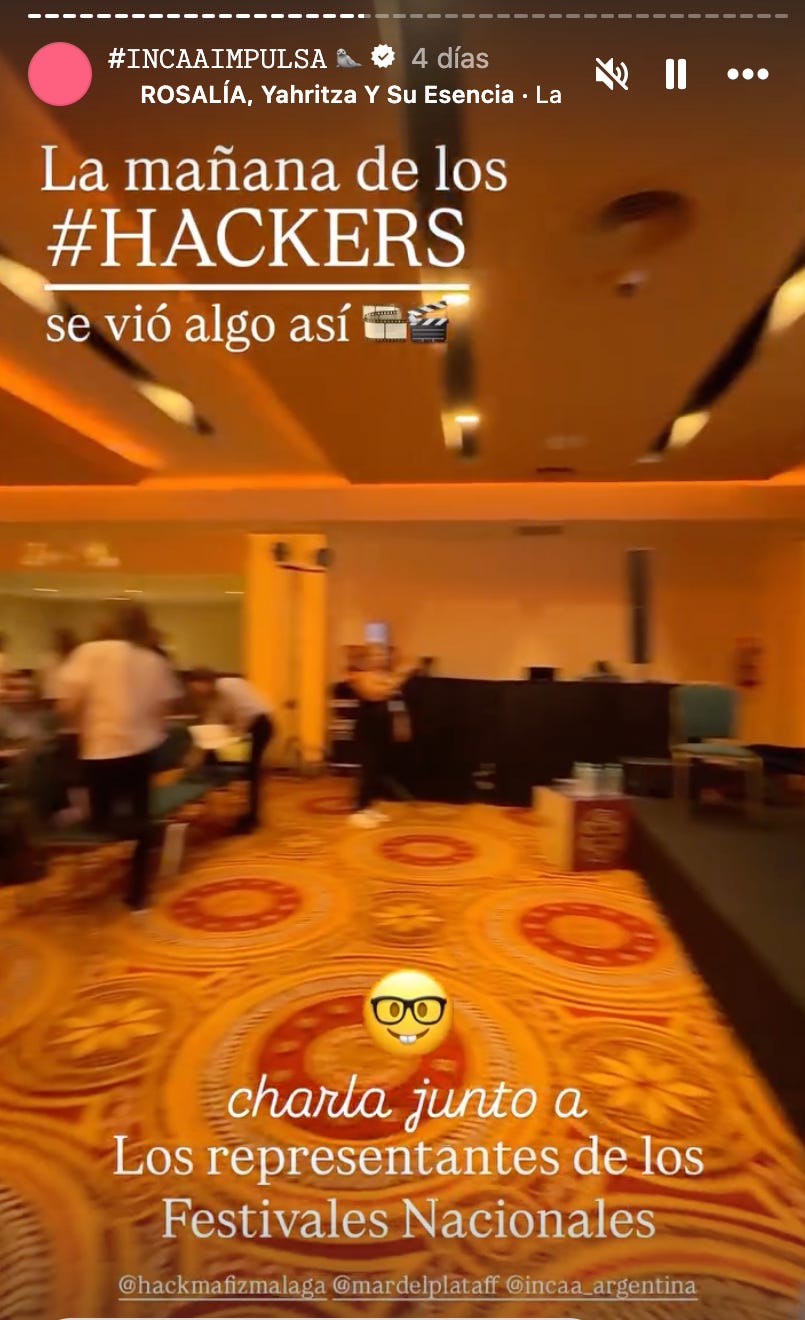 Las preguntas desde el público evidenciaron rápidamente que el público estaba casi totalmente compuesto por otros empleados o voluntarios de los festivales mencionados, lo que al menos produjo instancias de networking una vez finalizada la actividad. Hubo un momento en el que una joven pidió el micrófono y empezó a contar que era una estudiante sanjuanina de la Enerc, mientras otra chica al lado comenzó a filmarla como si estuviera por cantarle las cuarenta a alguien. La pregunta terminó siendo sobre consejos para crear un festival de cine, y las dos chicas estaban afectadas a “Incaa Impulsa”, la residencia/competencia de jóvenes streamers, influencers y creadores de contenido que fueron invitados a filmar reels en Mar del Plata y desarrollarse en otras actividades creativas, y que culminó con cuatro de ellos siendo anunciados en la ceremonia de clausura como los elegidos para ir a filmar reels al festival de Málaga.