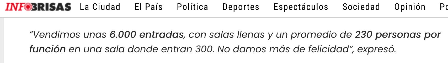 Esta es la programadora Lucía Salas el jueves pasado, expresando su felicidad a Infobrisas por el éxito en la venta de entradas de Fuera de campo en el teatro Enrique Carreras: