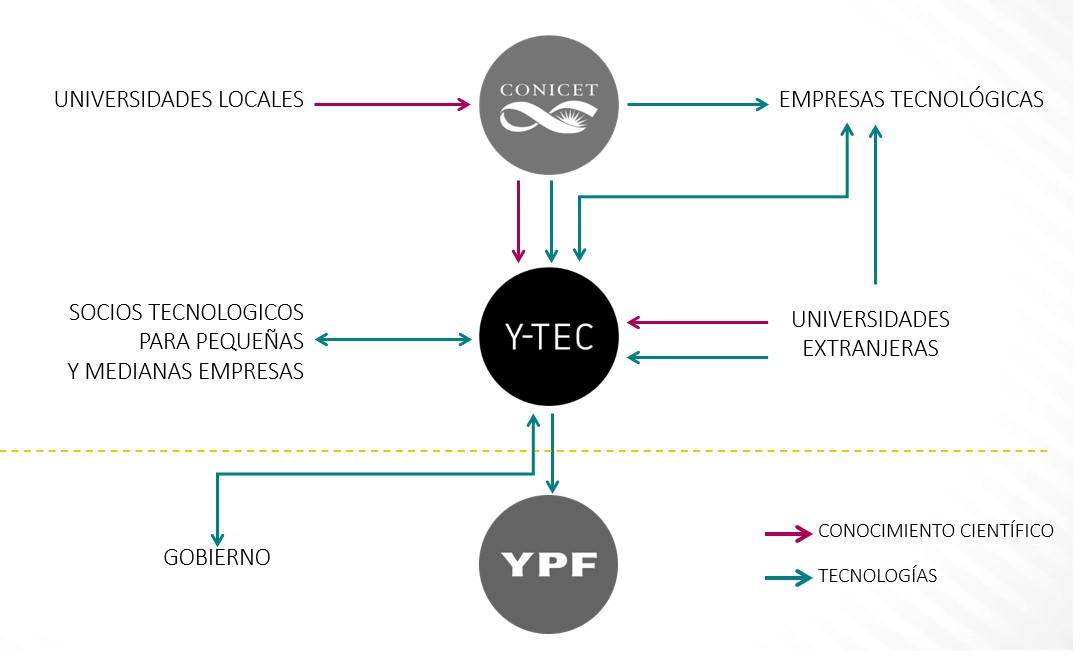 Y-TEC en su desenvolvimiento interactuaba, intercambiando conocimientos científicos y tecnológicos, con la red que indicamos en la Figura 1.