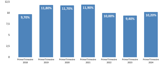 Gráfico 1. Tasa de desocupación. Primer trimestre 2018 a 2024