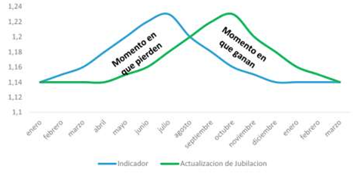 Gráfico 3. Dinámica del comportamiento de la actualización jubilatoria: el efecto rezago de la actualización