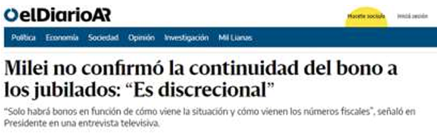 • En concreto, a contramano de los dichos de Milei, los jubilados no le ganaron a la inflación: las jubilaciones sin bono en el trimestre septiembre-noviembre de 2024 se mantendrán 4,6% por debajo del mismo trimestre de 2023, mientras que las jubilaciones con bono lo harían 13,6% por debajo.