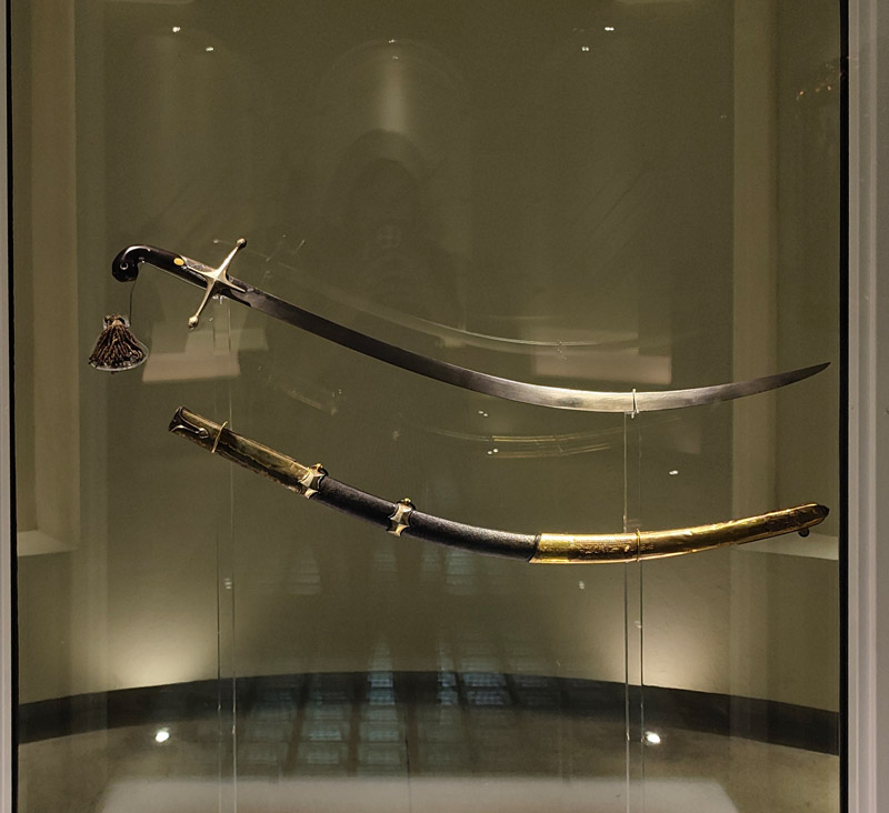 Un breve racconto histórico: el sable lo adquirió San Martín en Inglaterra, en 1811. Es un arma sin ostentaciones: no posee piezas de oro ni brillantes, es austera y sencilla. Tiene una curvatura irregular, que en su momento le daba gran capacidad de daño al adversario. No se sabe a cuánta gente mató o hirió San Martín con ese sable. Sí que lo usó San Lorenzo y en las campañas de Chile y Perú, en las batallas clave por la independencia. En 1844, desde el exilio en Francia San Martín le envió su sable corvo a Juan Manuel de Rosas, aún en el poder. Escribió que se lo legaba “como una prueba de la satisfacción que como argentino he tenido al ver la firmeza con que ha sostenido el honor de la República contra las injustas pretensiones de los extranjeros que tentaban de humillarla”. En 1852, después de perder la Batalla de Caseros, Rosas huyó de Buenos Aires. El sable fue con él, al exilio en Southampton. Y cuando murió, en 1877, lo heredó su yerno Máximo Nepomuceno Terrero, esposo de Manuelita, e hijo de José Nepomuceno Terrero, que había sido en vida el hombre de máxima confianza y administrador de los negocios de Rosas. Los Terrero —y la propia Manuelita— son, además, mis antepasados.