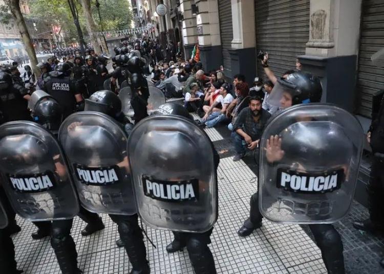 El día anterior a la manifestación, el Ministerio de Seguridad había intentado desalentar la protesta con la amenaza de prohibir el ingreso a eventos deportivos a personas “identificadas y detenidas” en situaciones violentas. Lo mismo hizo Bullrich al advertir que las fuerzas aplicarían el protocolo antipiquetes contra supuestos barrabravas -los hinchas de varios clubes se habían autoconvocado para apoyar el reclamo de los jubilados-. Horas antes de que los manifestantes llegaran a la plaza, el dispositivo de detenciones estaba preparado para trasladar personas hacia adentro del vallado colindante al edificio del Congreso y la sede del MPF y, a la vez, avanzar con cuerpos motorizados y de Infantería más allá de los cordones que impedían acercarse a la plaza por los accesos desde Rivadavia, Callao, Entre Ríos, Solís e Hipólito Yrigoyen, así como hacia las avenidas y calles al este, bloqueadas parcialmente por los cortes policiales sobre la Avenida 9 de Julio.